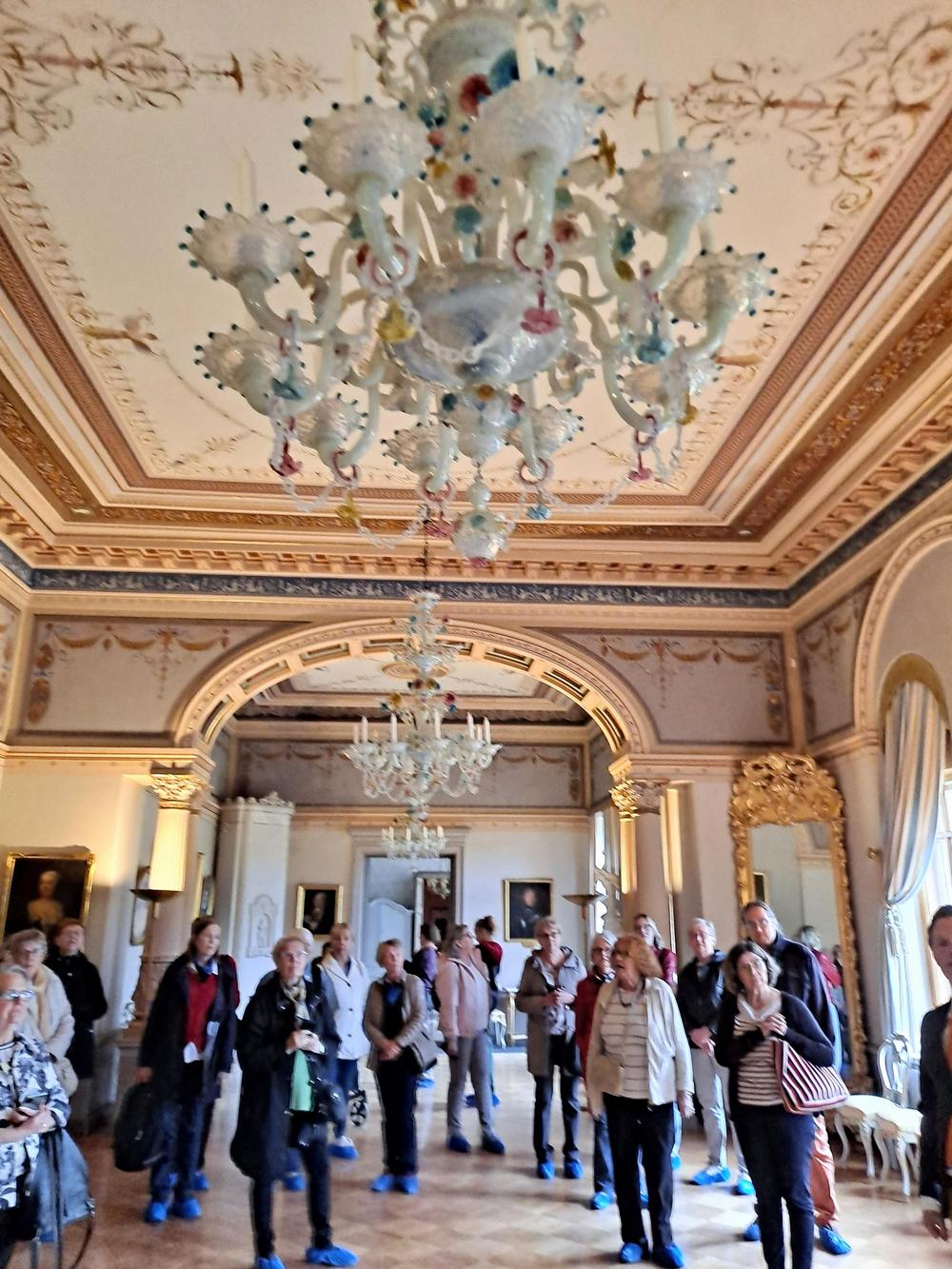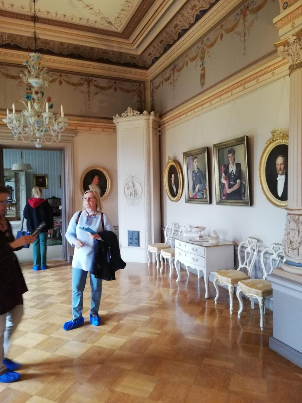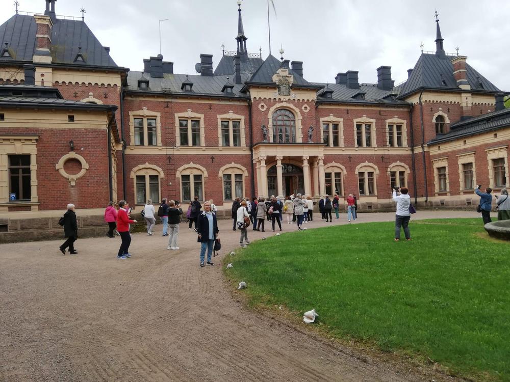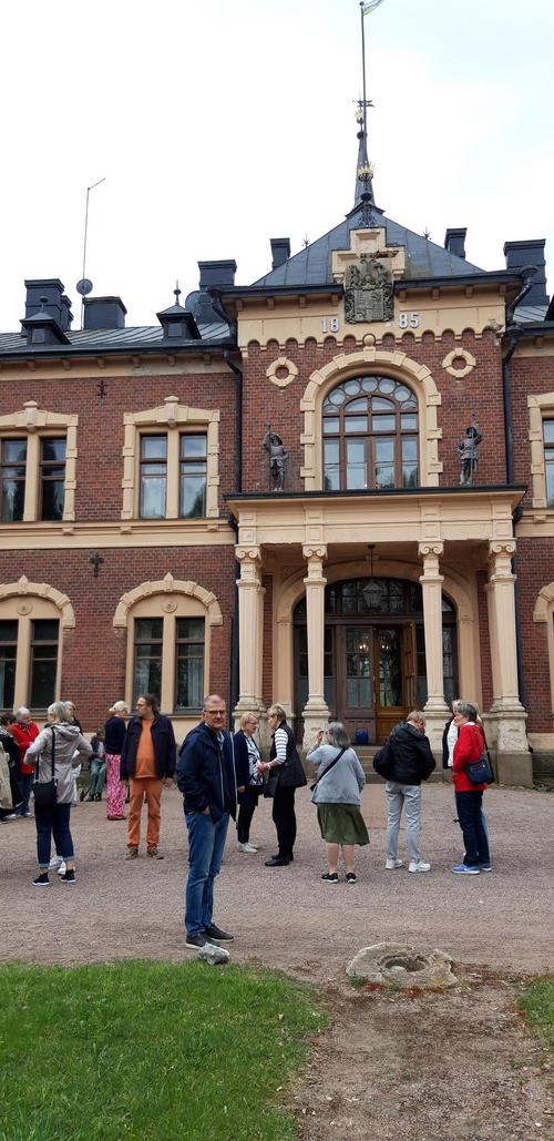 Kävimme kierroksella Malmgårdin linnassa, jossa yksityiskotia esitteli kreivi Henrik Creutz. Upea v. 1885 valmistunut kartano, jossa 50 huonetta. Ihailimme kauniita kattomaa-lauksia ja tauluja, täytettyjä eläimiä, hirvenpäästä - pöllöihin.
