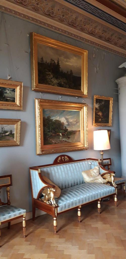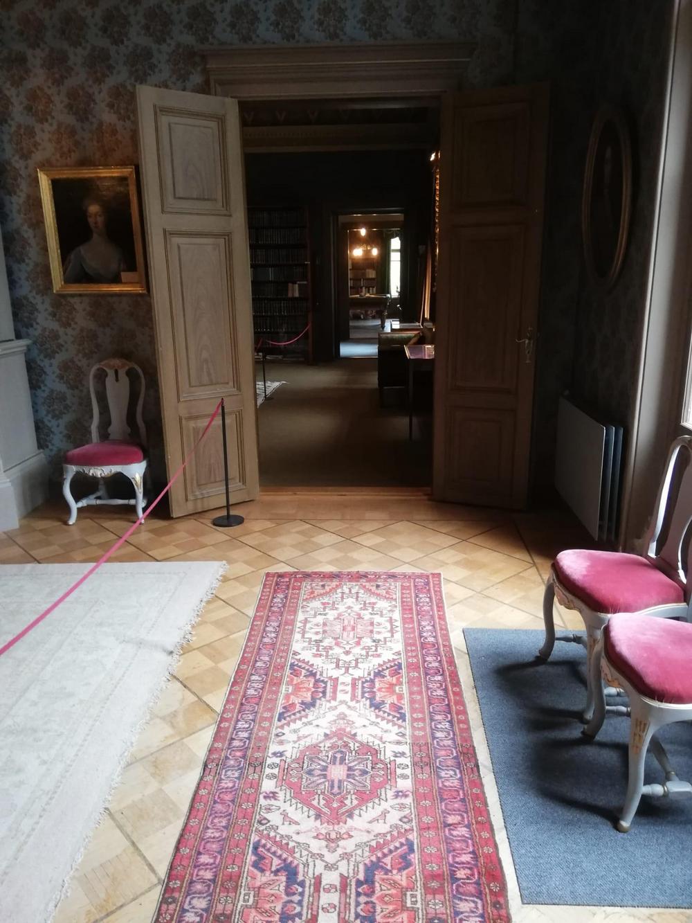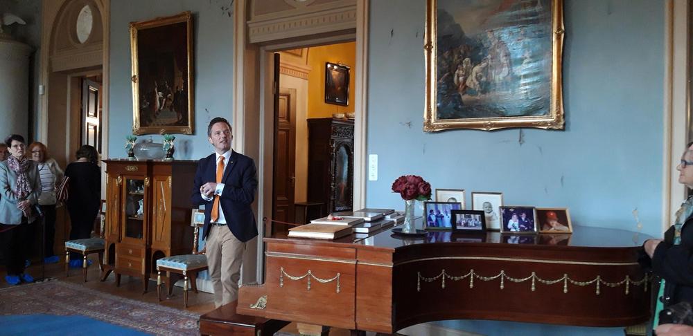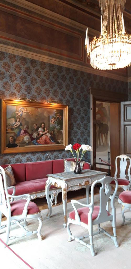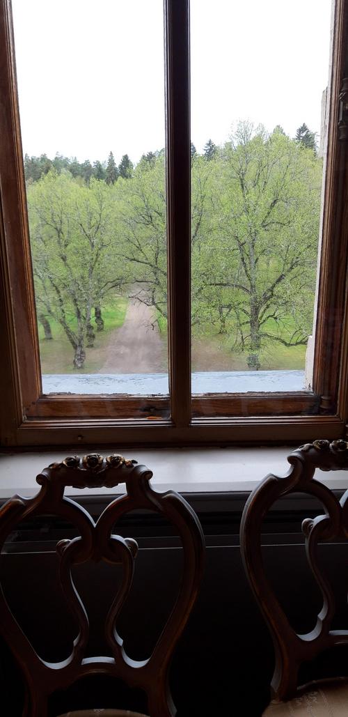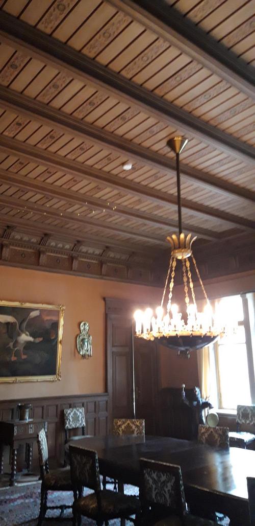 Kävimme kierroksella Malmgårdin linnassa, jossa yksityiskotia esitteli kreivi Henrik Creutz. Upea v. 1885 valmistunut kartano, jossa 50 huonetta. Ihailimme kauniita kattomaa-lauksia ja tauluja, täytettyjä eläimiä, hirvenpäästä - pöllöihin.