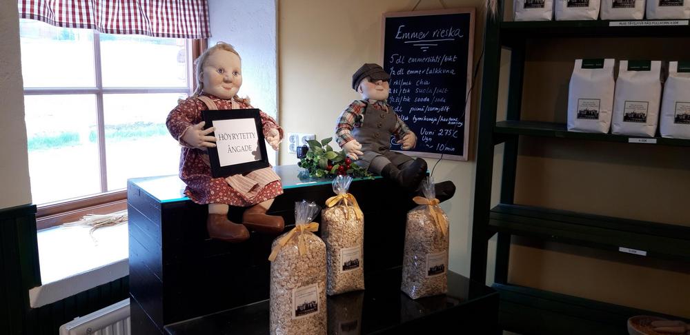 Kartanon puodista ostimme jauhoja, ryyniä, pastaa, ruokaöljyä ym. ja kaikki tuotteet olivat luomua. Myös panimon omaa siideriä oli myynnissä. Täällä nautimme kahvin/pullan.
