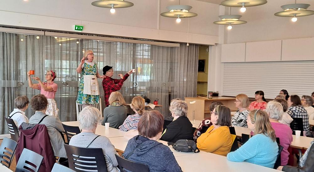Runsaslukuinen yleistö seurasi tarkkana Jpään teatterin Päiväläisten esitystä "Jauhetaan kahvia".