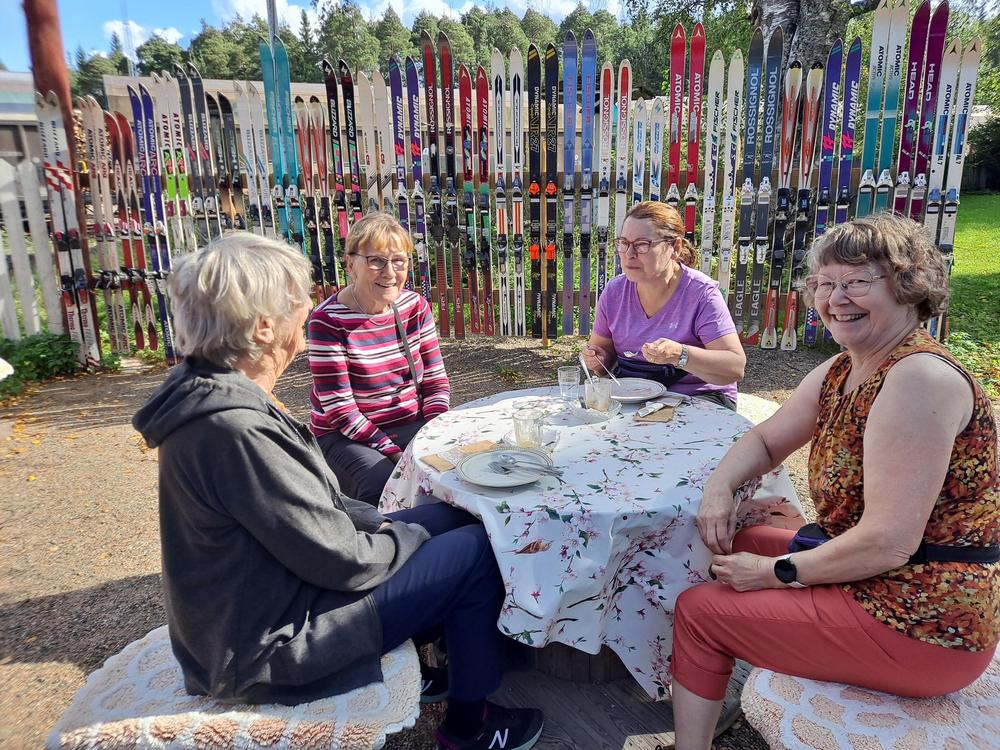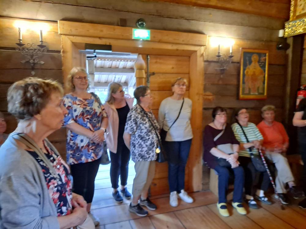 - keskiviikkona Sotkamossa kävimme autolla vilkaisemassa kirkkoa, sitten Einen muotikauppaan, josta muutama meistä ostikin vaatetta. Seuraavaksi kirppis Tuulan Tori - ehkä sieltäkin joku löysi jotain. Sitten kävely Saastamoisen kenkäkauppaan ja joku meistä poikkesi myös lähellä olevassa Second hand-myymälässä.