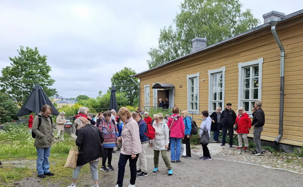 Bussi saapui H:kiin ja kauppatorin rannasta lautta vei meidät Vallisaareen, jossa hyväjalkaiset lähtivät 3 km:n lenkille, ihastelemaan saaren monimuotoisuutta maisemien, ja sen erikoiskasvillisuutta tutkiskellen saarta kiertävällä hyväkulkuisella näköalapolulla. Saaresta tehdystä esitteestä saimme historiallista tietoa 1600-luvulta saakka, niin Ruotsin kuin Venäjänkin vallan ajoilta nykypäivään. Lopuksi nautimme suolaisen piirakan ja kahvin.