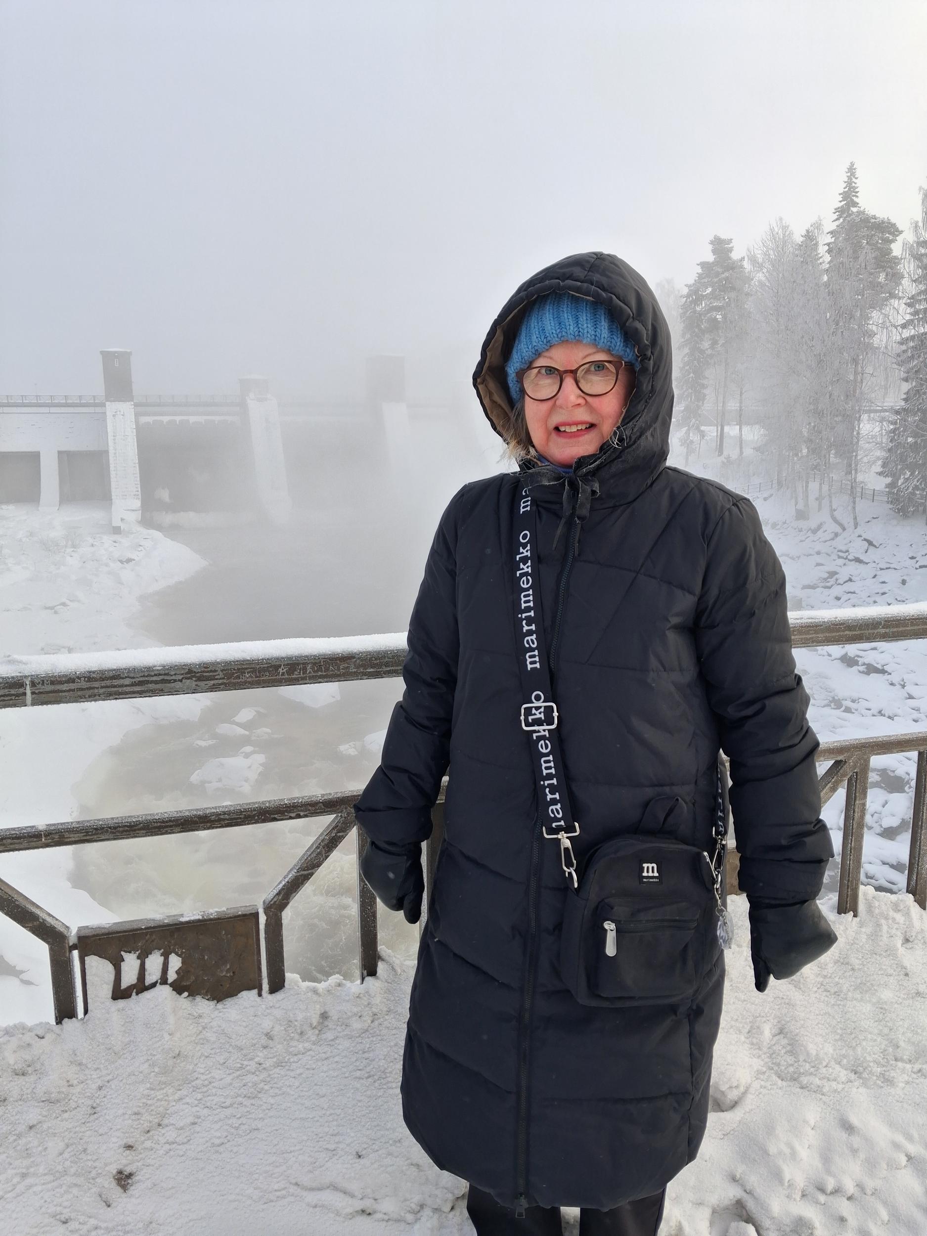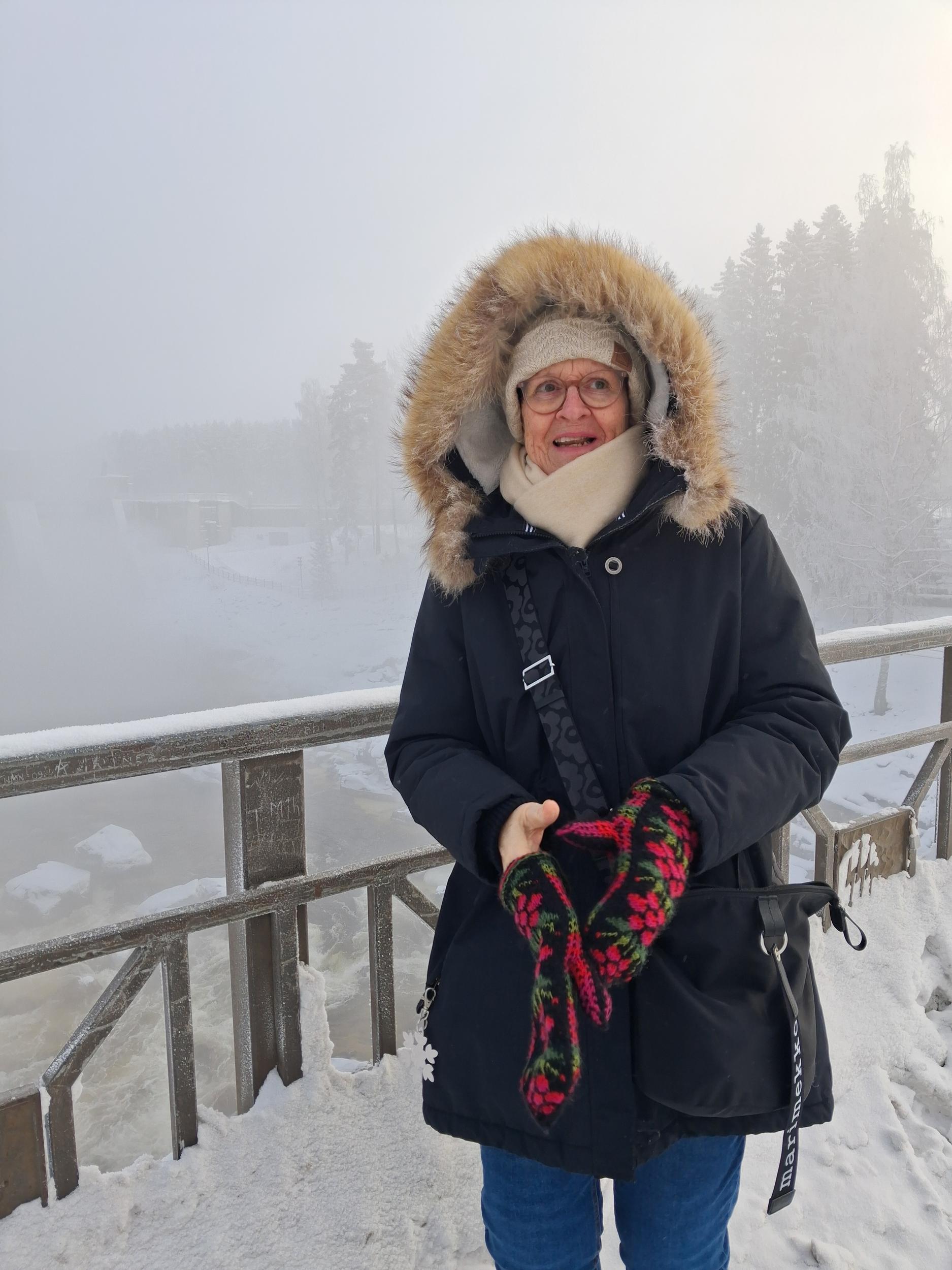 Ilma oli kirpeä. Pakkasta oli aamuisin yli 20 astetta, mutta se ei meitä haitannut. Satumaisen kauniissa maisemassa nautimme kävellen jäällä sekä metsässä.
